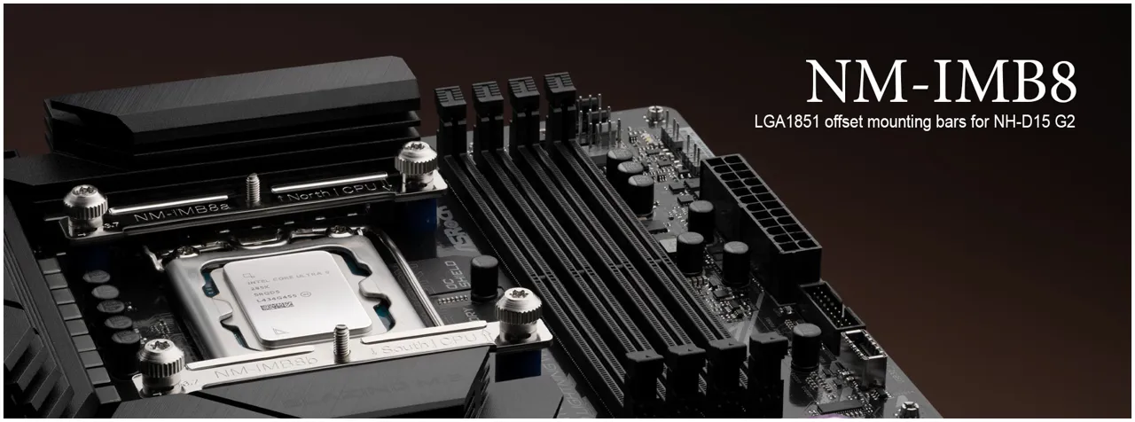 Noctua tiếp tục cải thiện hiệu suất cho các bộ tản nhiệt CPU của mình. Tuần trước, Noctua đã cho ra mắt thanh lắp lệch hướng NM-IMB8 mới cho bộ tản nhiệt đầu bảng NH-D15 G2. Bằng cách bù trừ cho bộ tản nhiệt, điểm tiếp xúc các điểm nóng sẽ hợp lý hơn trên CPU Intel Core Ultra mới nhất như Core Ultra 9 285K hoặc Core Ultra 7 265K.