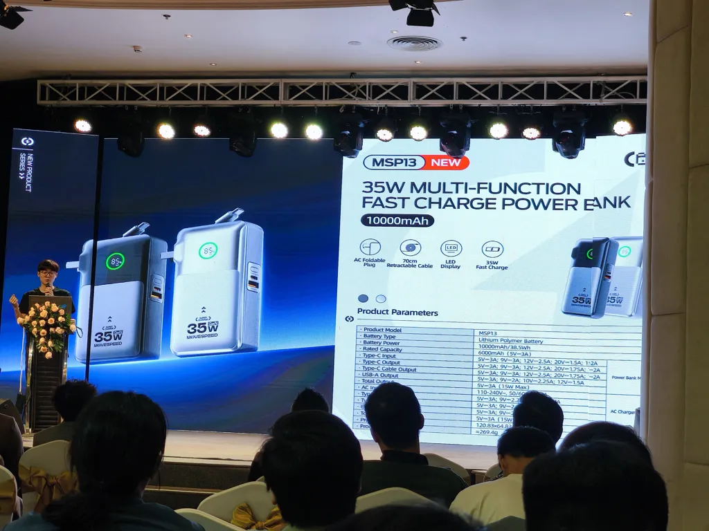 Tâm điểm của buổi lễ khiến toàn bộ khán phòng ấn tượng mạnh mẽ chính là màn trình diễn thực tế (live demo) kiểm chứng chất lượng an toàn của sản phẩm. Ngay trên sân khấu, chuyên gia kỹ thuật đến từ Movespeed đã thực hiện thử nghiệm đâm xuyên sạc dự phòng bằng vật kim loại nhọn. Kết quả cho thấy, dù chịu tác động vật lý phá hủy nghiêm trọng, viên pin Movespeed vẫn giữ trạng thái ổn định, không hề xảy ra hiện tượng cháy nổ hay bốc khói.
